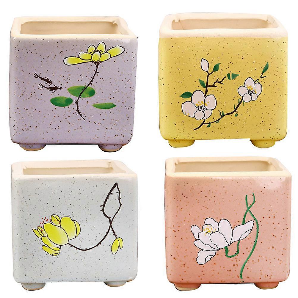 Small Planters For Indoor Plants Drainage Flower Pots Square Shape Assorted Color Great For Bathroom Kitchen Or Patio Displays 4Pcs