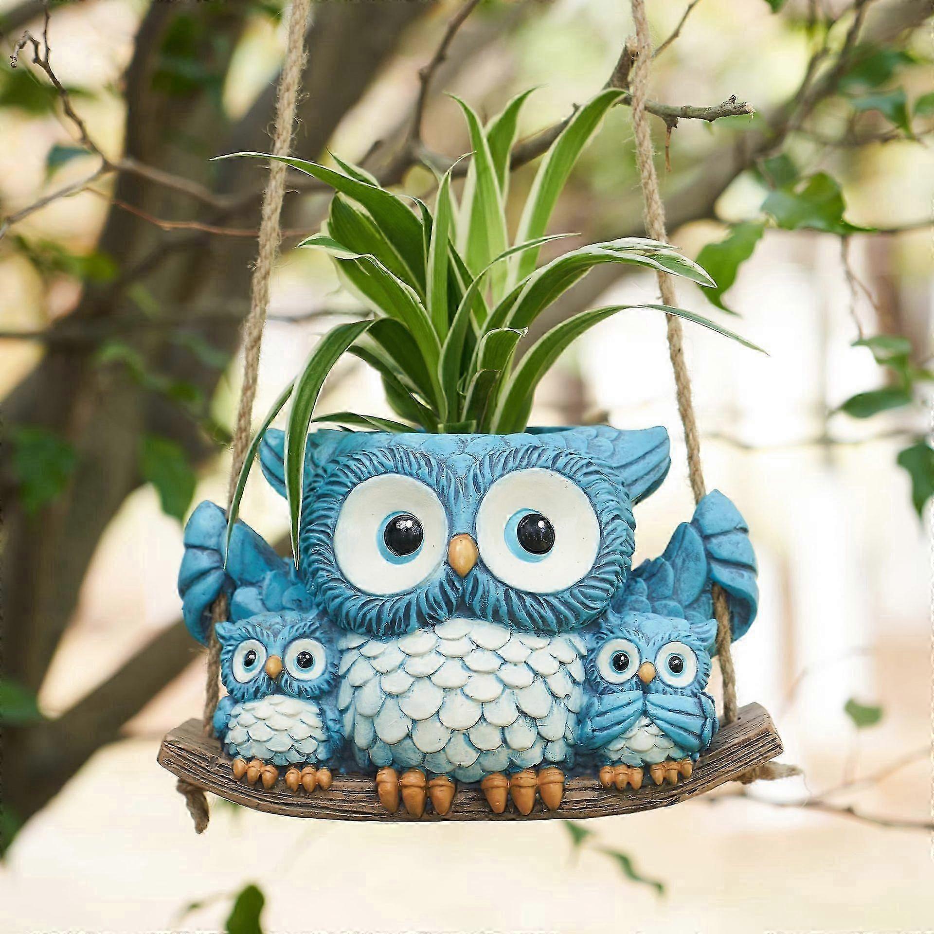 Swing Owl Hanging Planters for Indoor Plants, Cute Small Succulent Pots with Drainage Hole, Unique Resin Plant Hangers Outdoor, Hanging Plant Holder