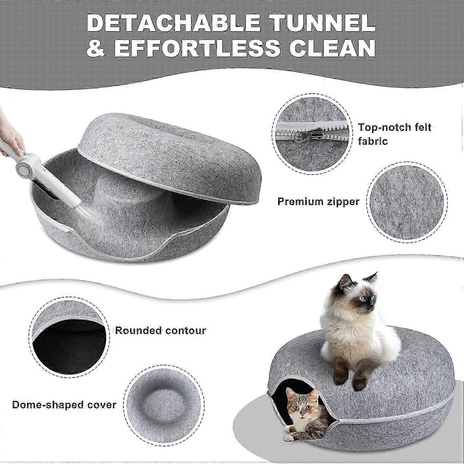 Detachable Round Cat Cave for Indoor Cats and Cat Play Tunnel Size L 24x24x11 Inch 2025