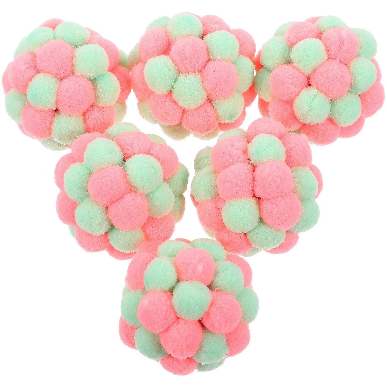 Interactive Cat Toy Plush Pom with Bell for Indoor Cats Entertainment Fuzzy Cat Toys 6Pcs