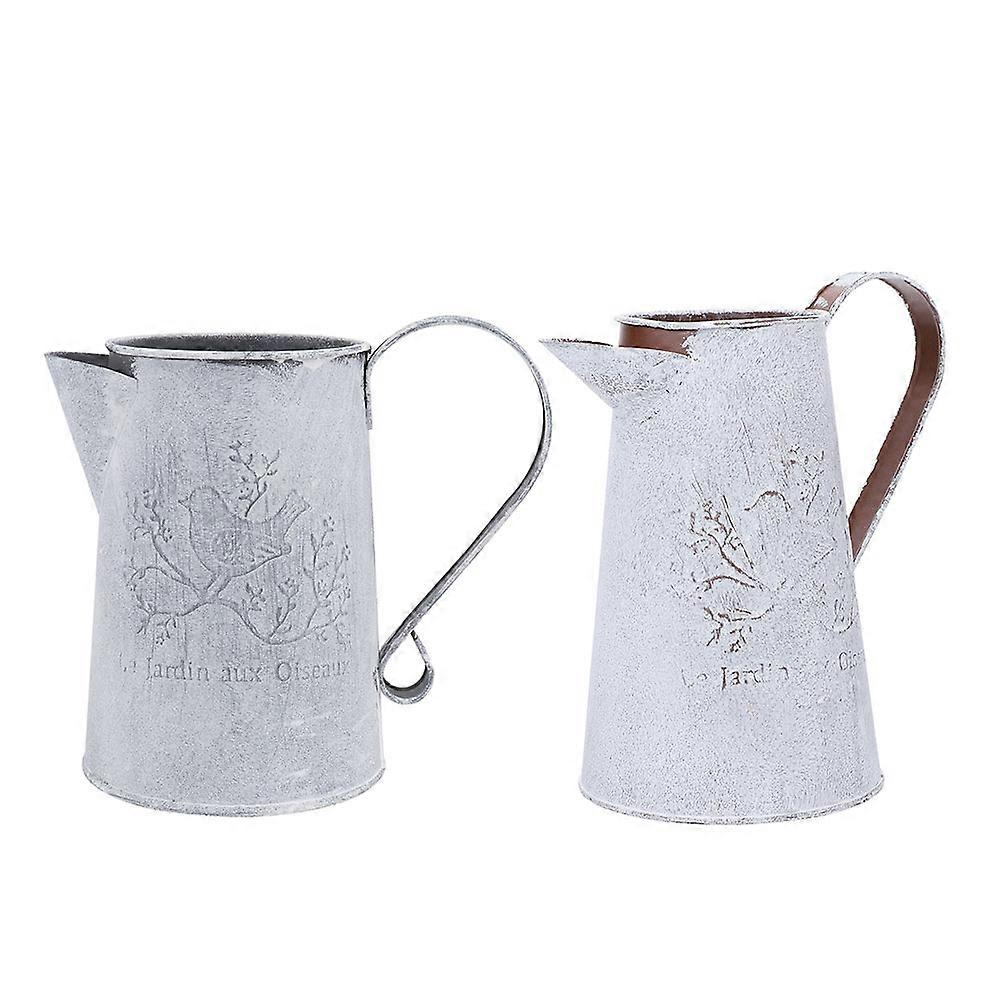 Creative Flower Bucket Metal Flowerpot Perfect For Indoor Decoration Rustic Style 2Pcs