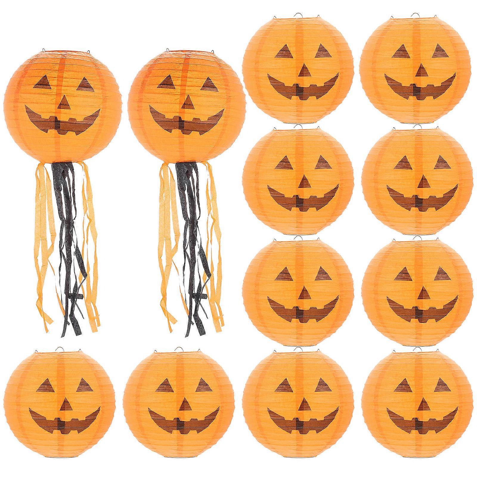 Indoor Decorative Paper Lanterns 12Pcs Halloween Party Decoration 25X25cm Orange Pumpkin Design