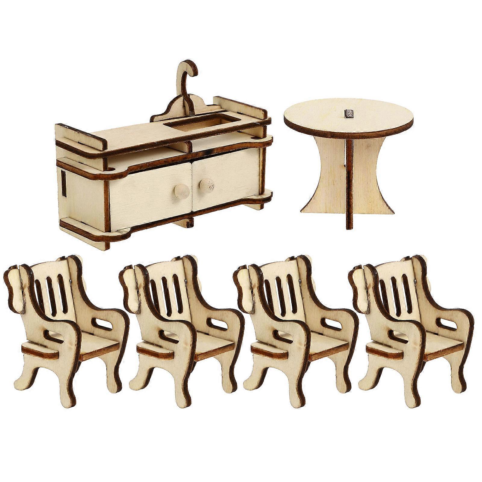 Miniature House Furniture Kitchen Set for Indoor Play Wooden Khaki Inspires Thinking 1Set