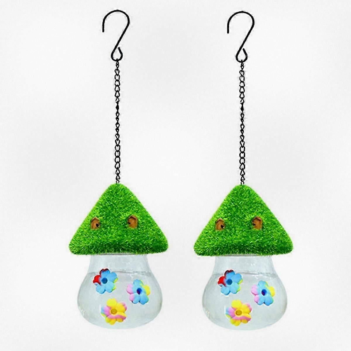 Outdoor Hanging Bird Feeder - Unique green mushroom design, loved by both birds and garden enthusiasts. Easy to Hang & Clean - Includes a chain and S-shaped hook for simple installation. Clean by rinsing and air-drying. Attracts Birds - Removable, non-leaking flowers with petal-decorated nozzle for clear visibility of liquid content. Durable Material - Made of high-quality ABS and silicone, waterproof and weather-resistant for long-lasting use. Note: Flower colors vary randomly (does not affect function). Style: Colored Flowers Material: ABS + resin Size: Approx. 9.5x15.5cm (excluding chain) Package Includes: 2 �� outdoor bird feeders Disclaimer: Slight color variations may occur due to lighting or display settings. Size tolerance: +/- 1-3cm.