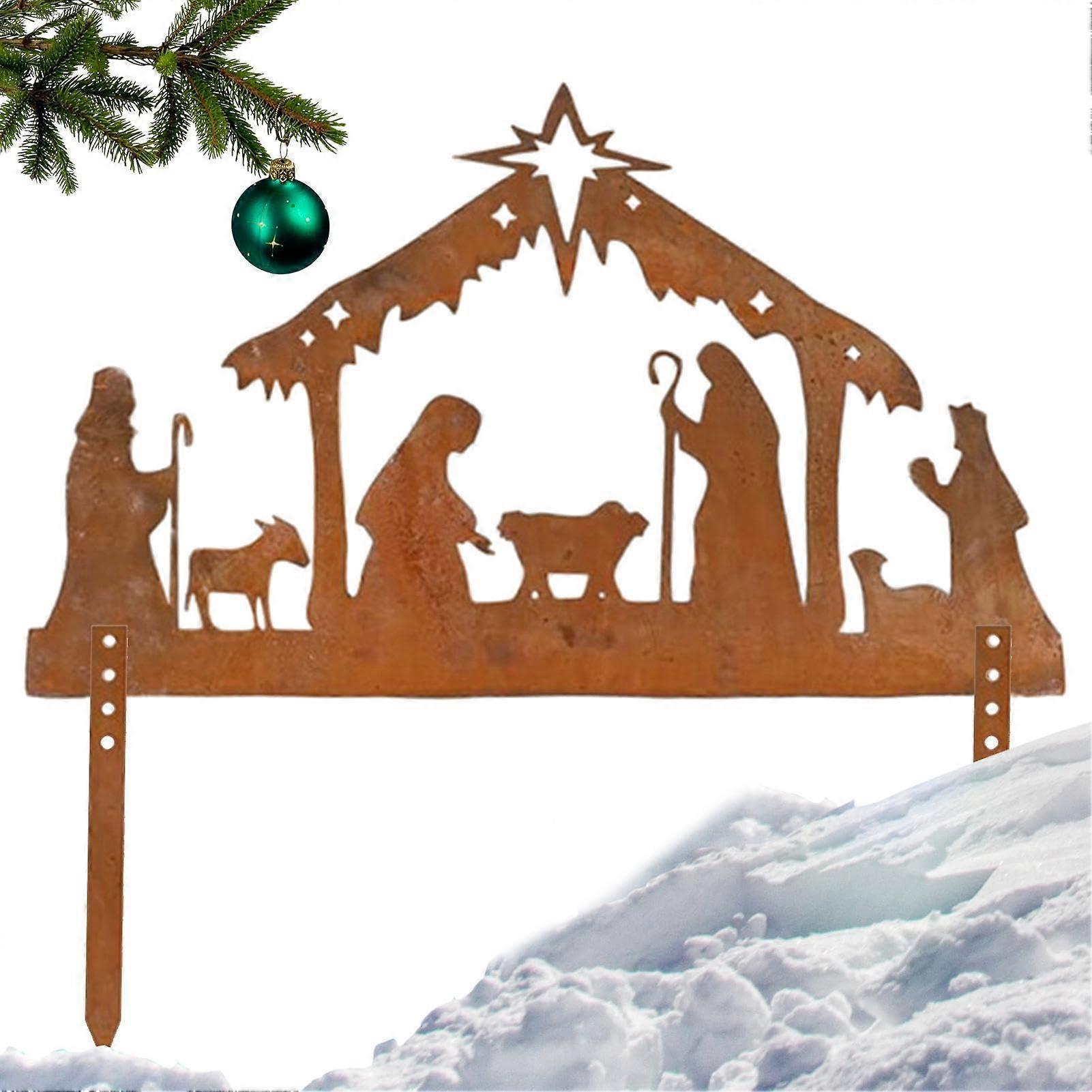 Nativity Scene Outdoor Yard Metal Silhouette Holy Family Backyard Sign Outdoor Christmas Stakes