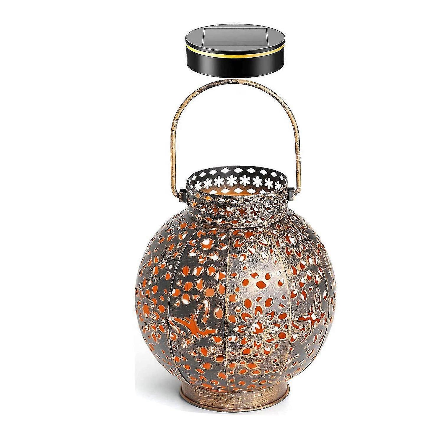 Solar Lanterns Outdoor, Metal Hanging Solar Garden Lights With Vintage Bronze Finish And Warm White