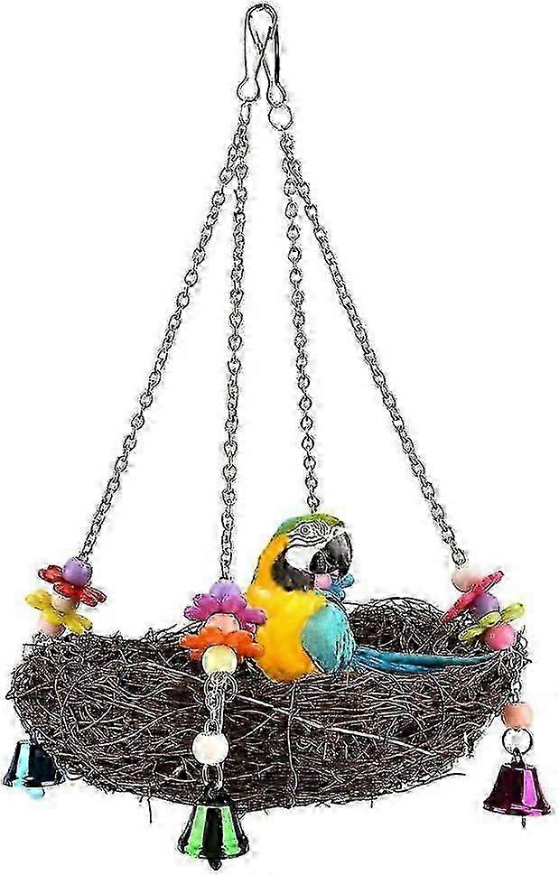 Outdoor Bird House Swing Nest - Rattan Parrot Swing with Bells for Birds - Cozy Nesting Home & Entertainment Perch
