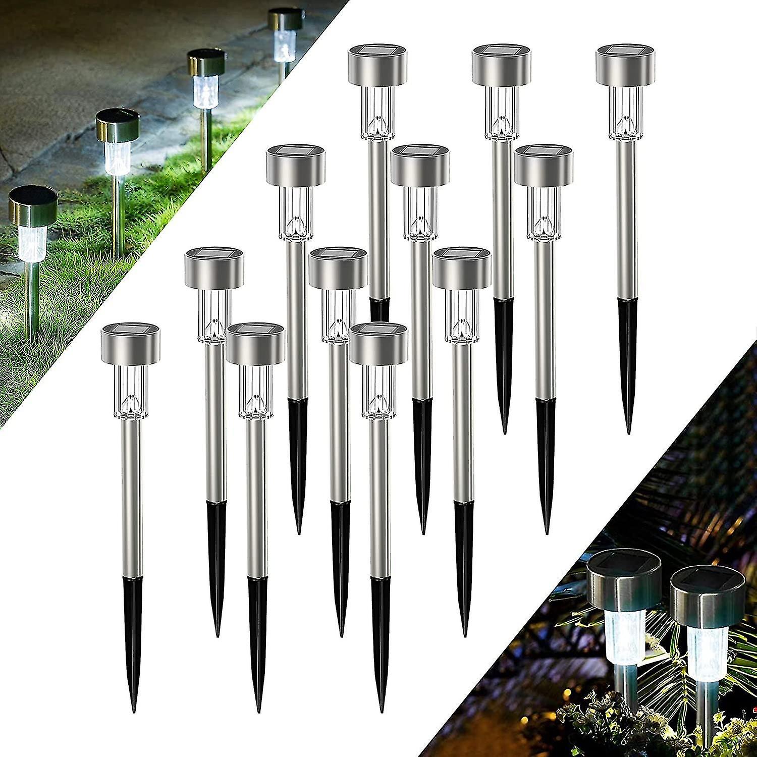 Outdoor Garden Solar Lights, 12 Pieces Outdoor Stainless Steel LED Solar Lights, IP44 Watt