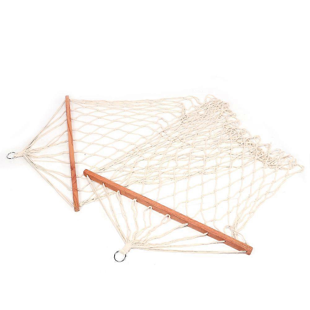 Feature:1. Hanging swing, exquisite workmanship, suitable for installation in parks and courtyards.2. This hammock adopts high-quality thick rope and wood material, durable and wear-resistant, and has a long service life.3. Strong and firm, high safety, strong bearing capacity, the maximum bearing is about 120KG.4. Using mesh design, soft and comfortable, suitable for outdoor installation.5. Small size and light weight, suitable for outdoor travel and camping.Specification:Condition: 100% Brand NewItem Type: HammockMaterial: Rope, WoodMaximum Load: 120kgWeight: Approx. 1139g / 40.2ozPackage Size: Approx. 80.00x20.00x8.00cm / 31.5x7.9x3.1in .Package List:1 x HammockNote:1. It is recommended that the fixed place of the hammock not be more than 1 meter above the ground. The straps and ropes are abrasion items. Please pay attention to the degree of wear during use. Please do not take any responsibility for the problems during use.2. Children under 7 years old must be under adult supervision when using.3. It is not easy to grasp the balance of living in a hammock for the first time. It is recommended to try a few more times to get the balance point above the ground.4. Please allow 0-2 cm error due to manual measurement. Thanks for your understanding.5. Monitors are not calibrated same, item color displayed in photos may be showing slightly different from the real object. Please take the real one as standard.