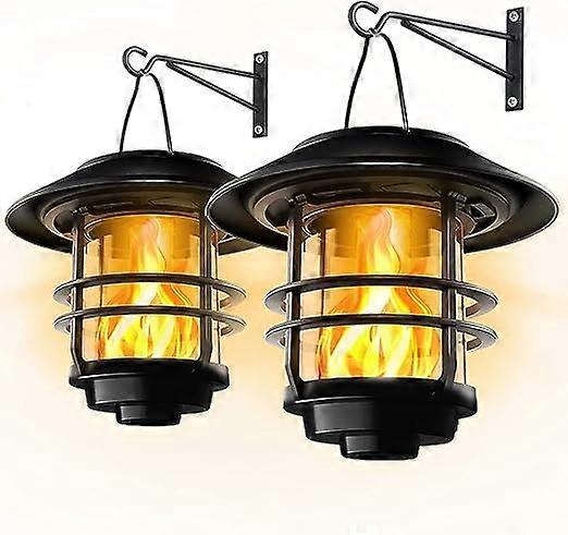 Solar Lights for Outdoor Garden, Glass and Metal IP65 Waterproof, Flickering Flames Wall Lights, Pack of 2 Hanging Wall Bracket for Porch, Patio and Y