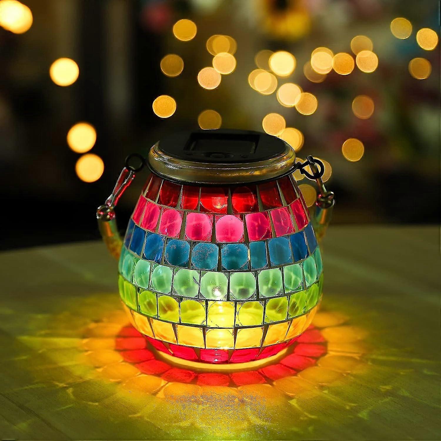 Solar Lanterns For Outdoor Garden, Mason Jar Solar Lights For Outdoor Hanging, Ip44 Waterproof Solar Lights, Outdoor Glass Mosaic Light