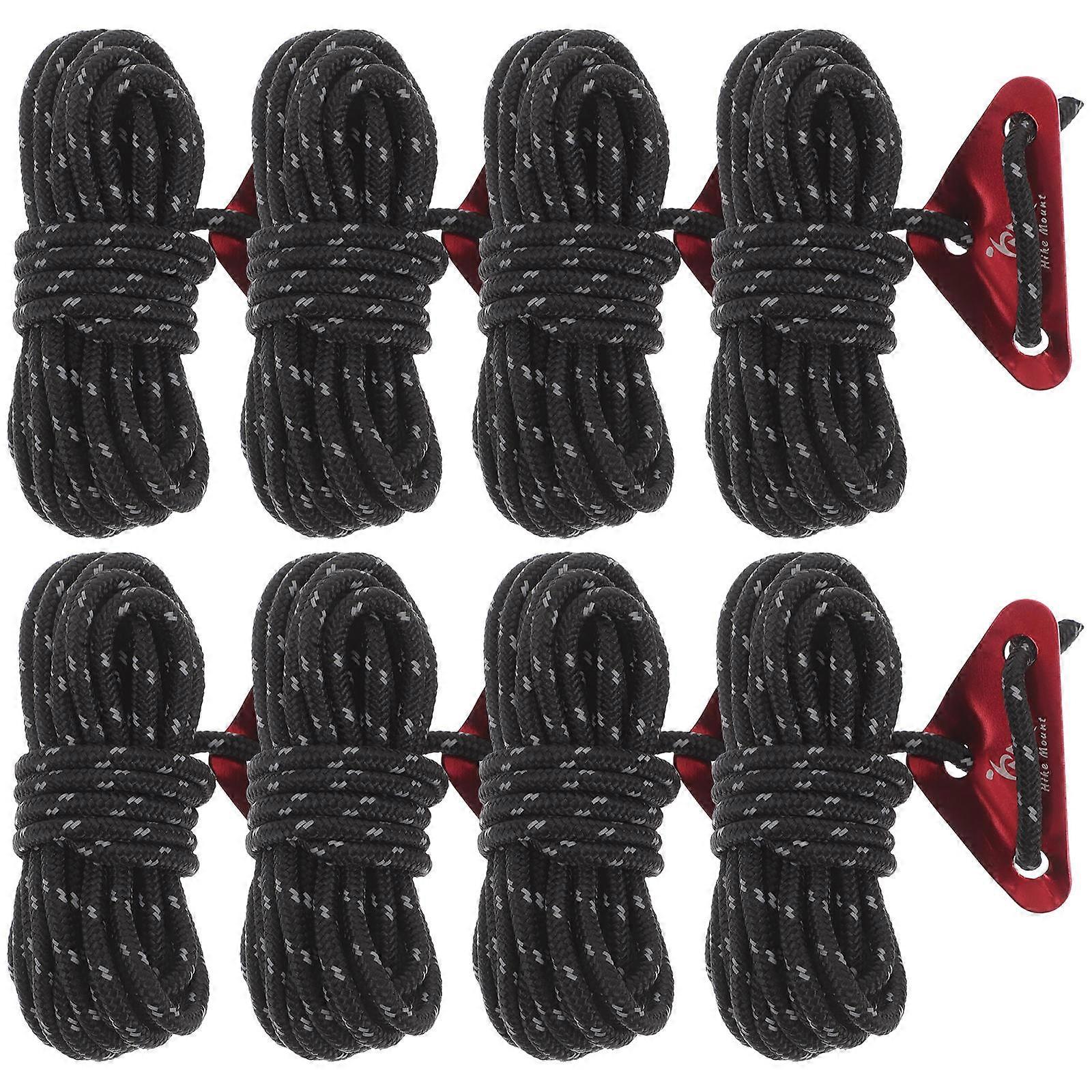 Outdoor Camping Accessories 8Pcs Black Windproof Ropes For Hiking And Wilderness Adventures Adjustable Length Durable Design