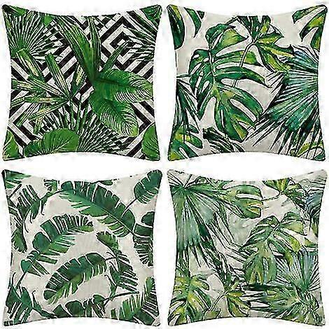 Outdoor Cushion Cover Set of 4 - Waterproof Green Tropical Plant Pattern - Patio Garden Decor - 45x45cm