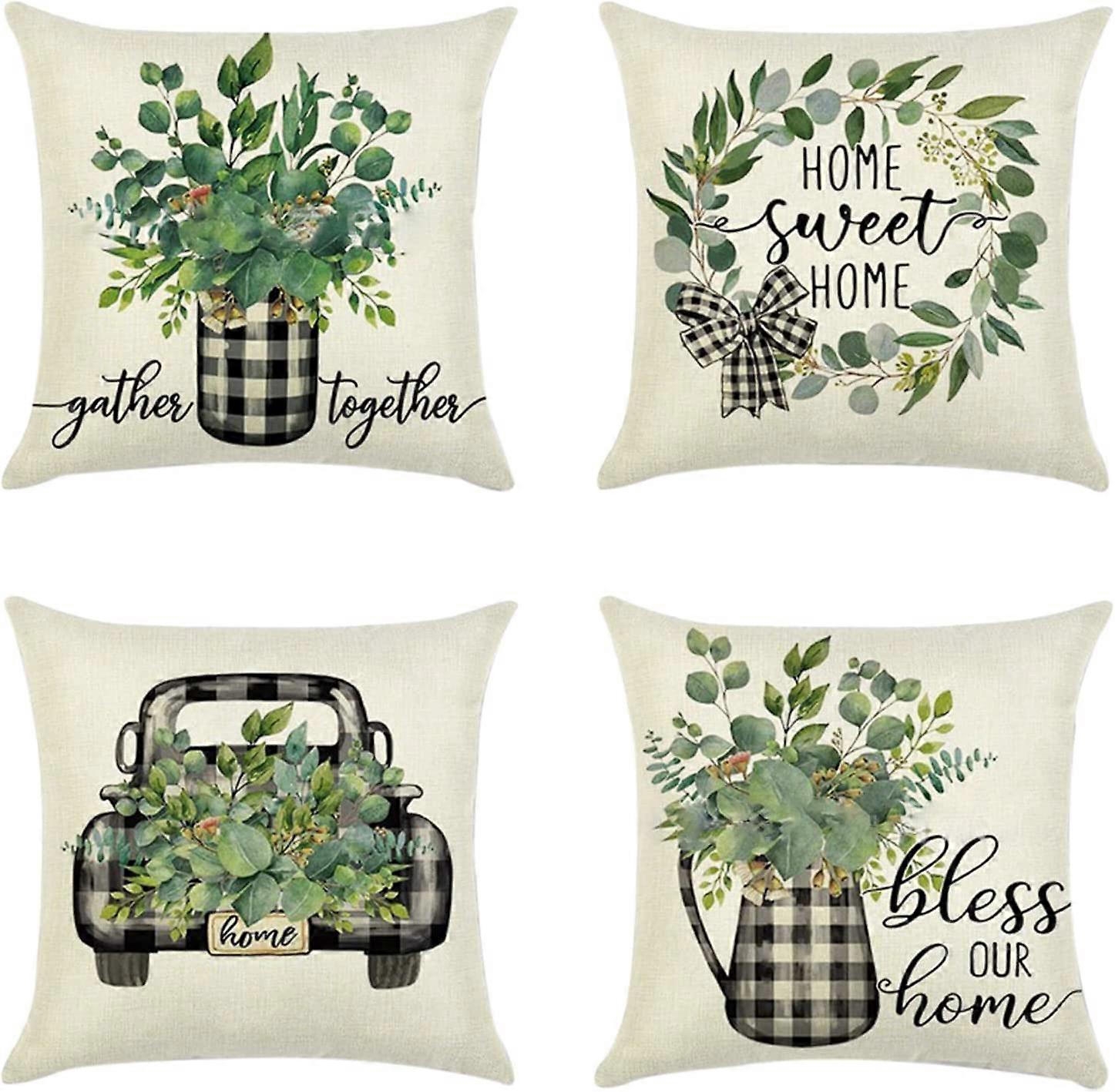 Outdoor Cushion Covers 45 x 45cm Waterproof Decorative Linen Pillow Cover Flower Green Leaves Truck Throw Pillow Case for Living Room Sofa Patio Garde
