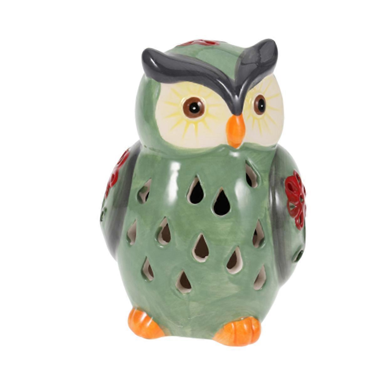 Outdoor Solar Powered Lamp Ceramic Owl Shape Automatic Lighting Lawn Yard Garden Olive Green 1Pc