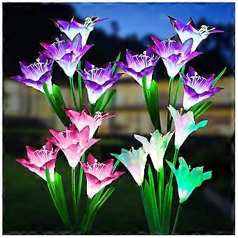 屋外ソーラーライト、より大きなユリの花と4パックソーラーガーデンライト、庭のための防水屋外ライト