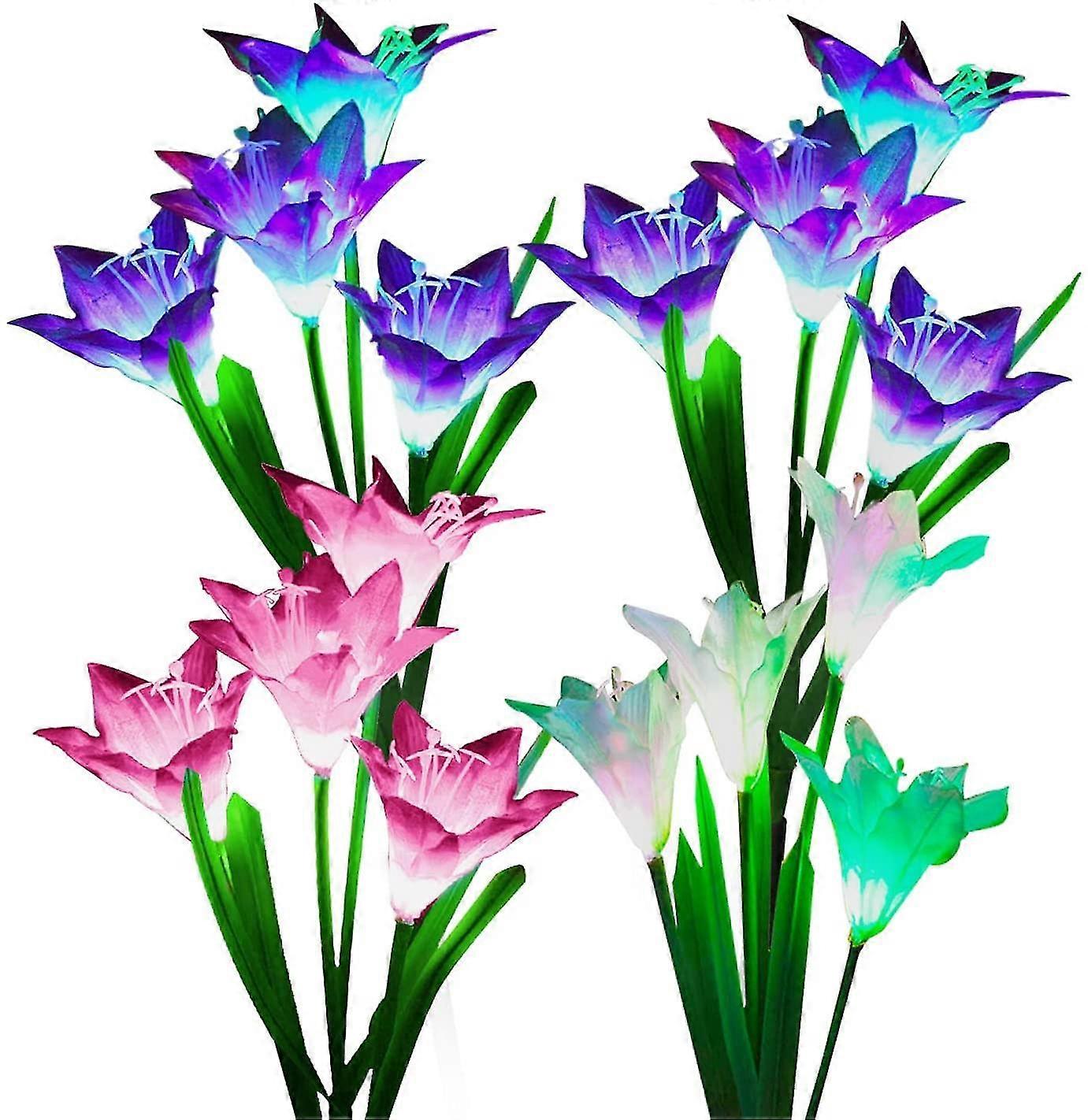 Outdoor Solar Lights, Kooper 4 Pack Solar Garden Lights With Bigger Lily Flowers, Waterproof 7 Color Changing Outdoor Lights - Bigger Solar Panel For