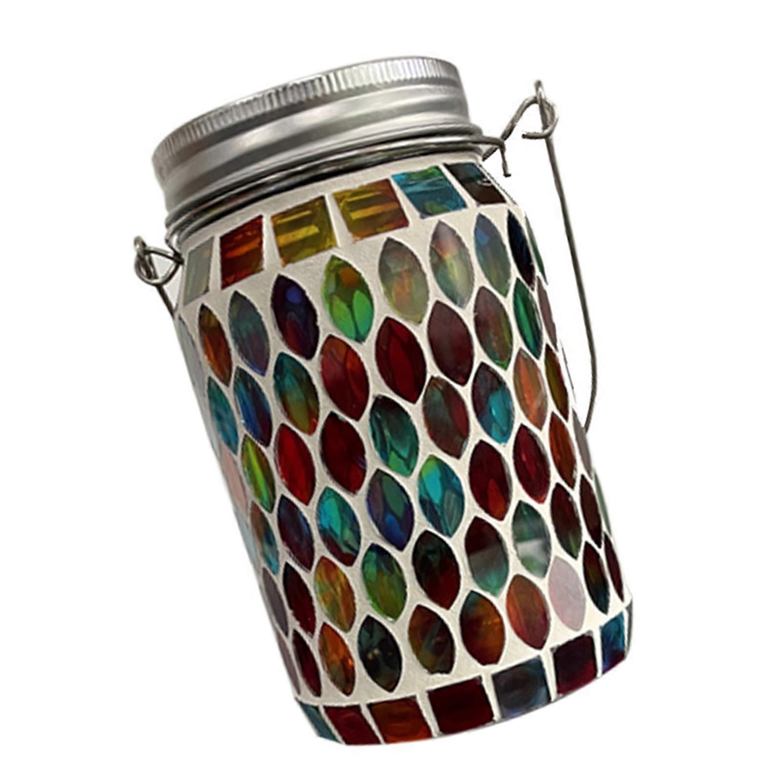 Outdoor Solar Lantern Lights Decorative Mosaic Jar Hanging Lantern Pathway Garden Lights Lawn Lamp Waterproof Landscape Light