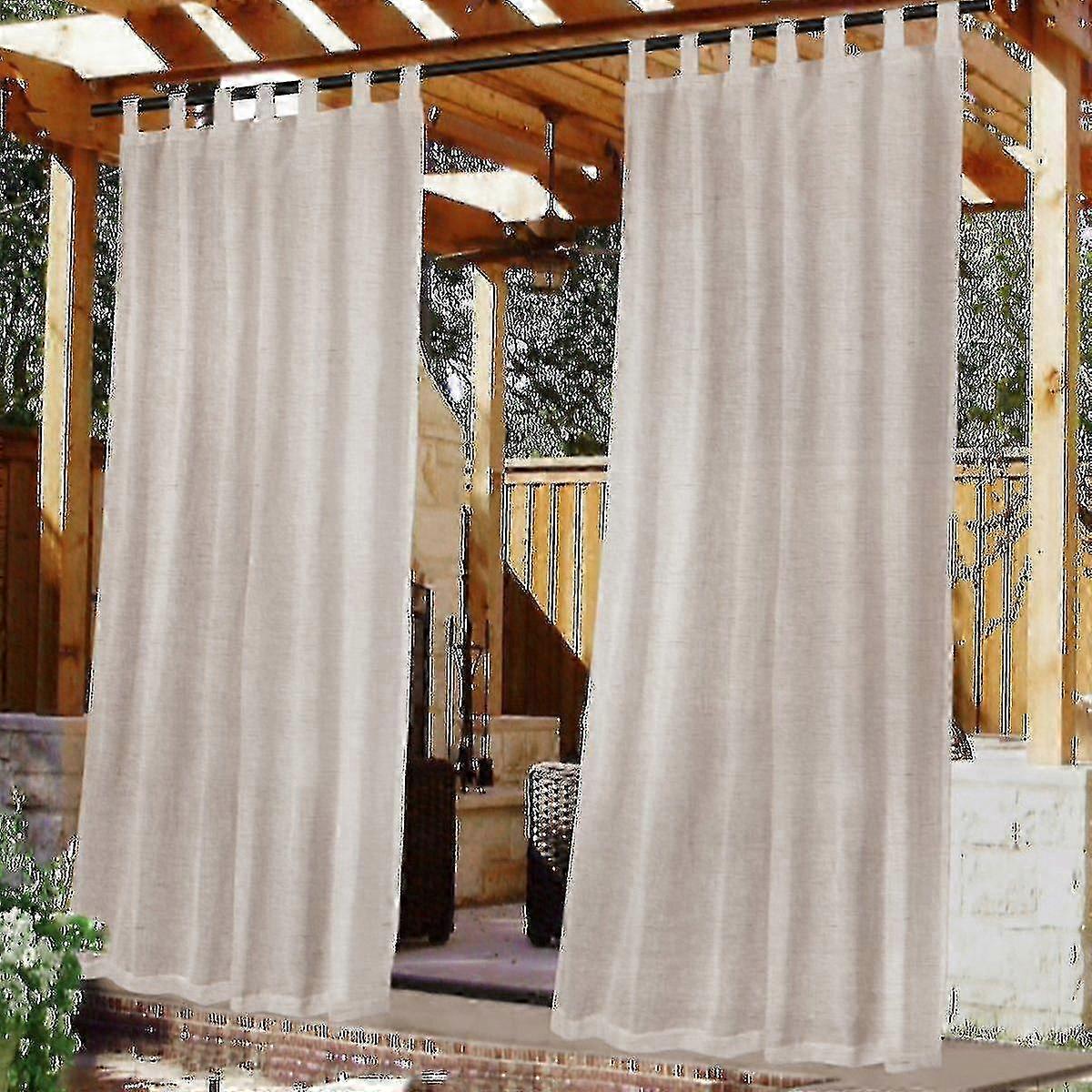 Waterproof Linen Sheer Curtains for Outdoor Patio Detachable Self-Stick