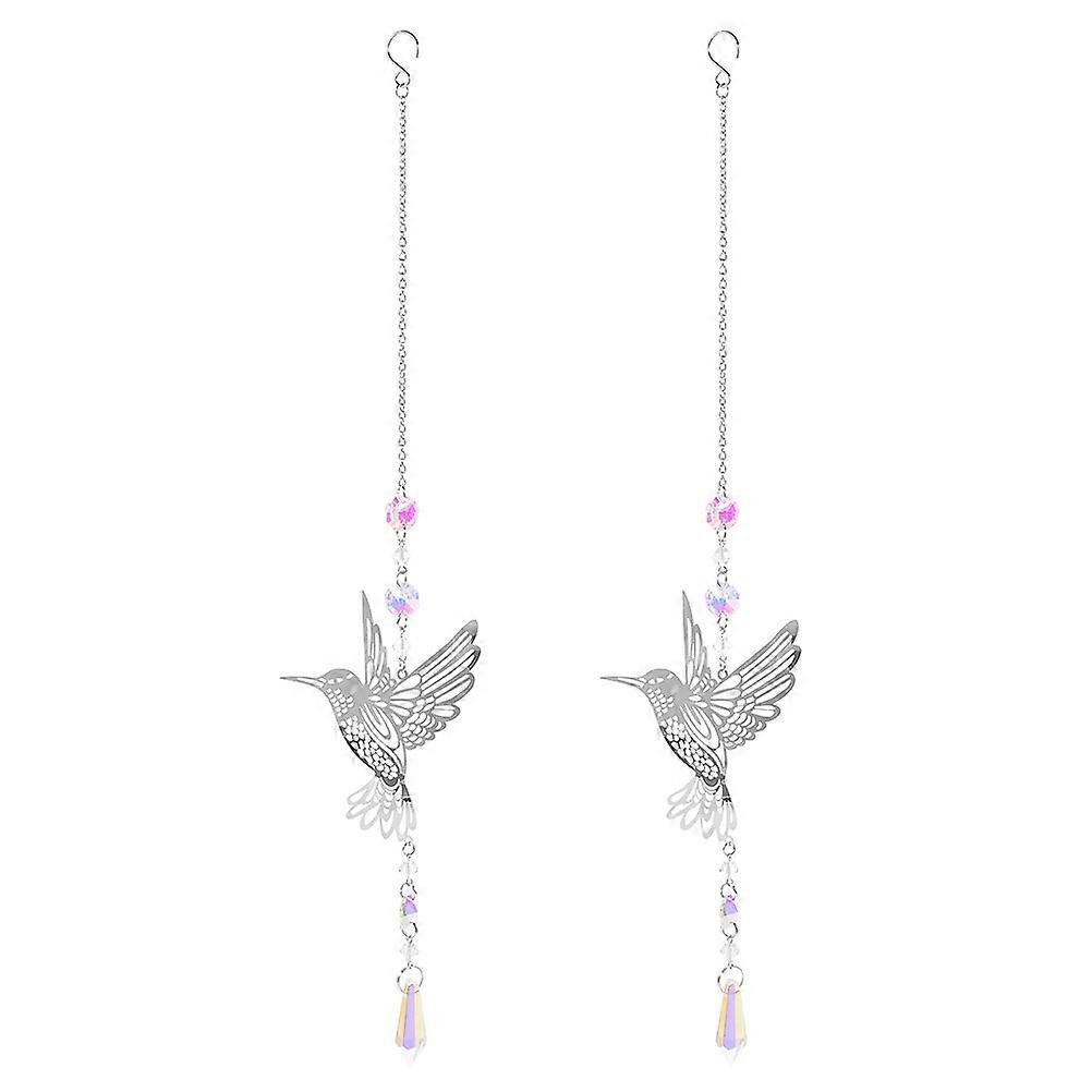 Decorative Sun Catchers Hummingbird Pendant For Outdoor Party Silver 41.00X9.50X0.10CM Wall Decoration 2Pcs