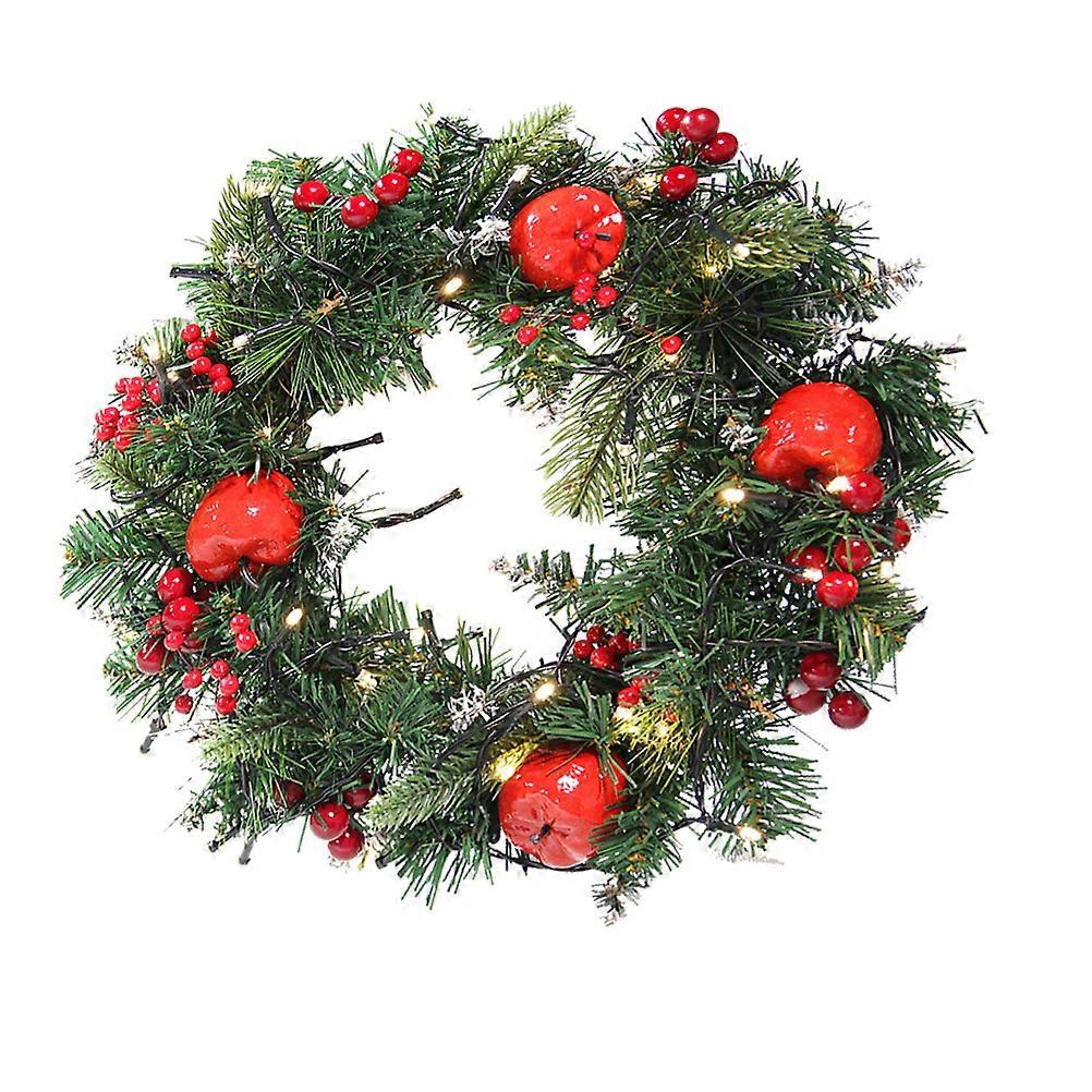 Outdoor Wreath Lights Cherry Wreath Decor Front Door Decoration 30cm Warm Light 1Set