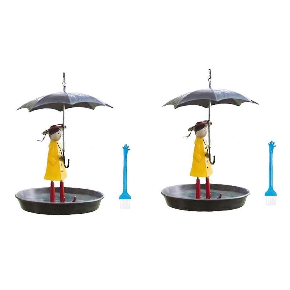 Outdoor Hanging Bird Feeder Set with Metal Chain and Umbrella Girl Shape, Feeder with Brush