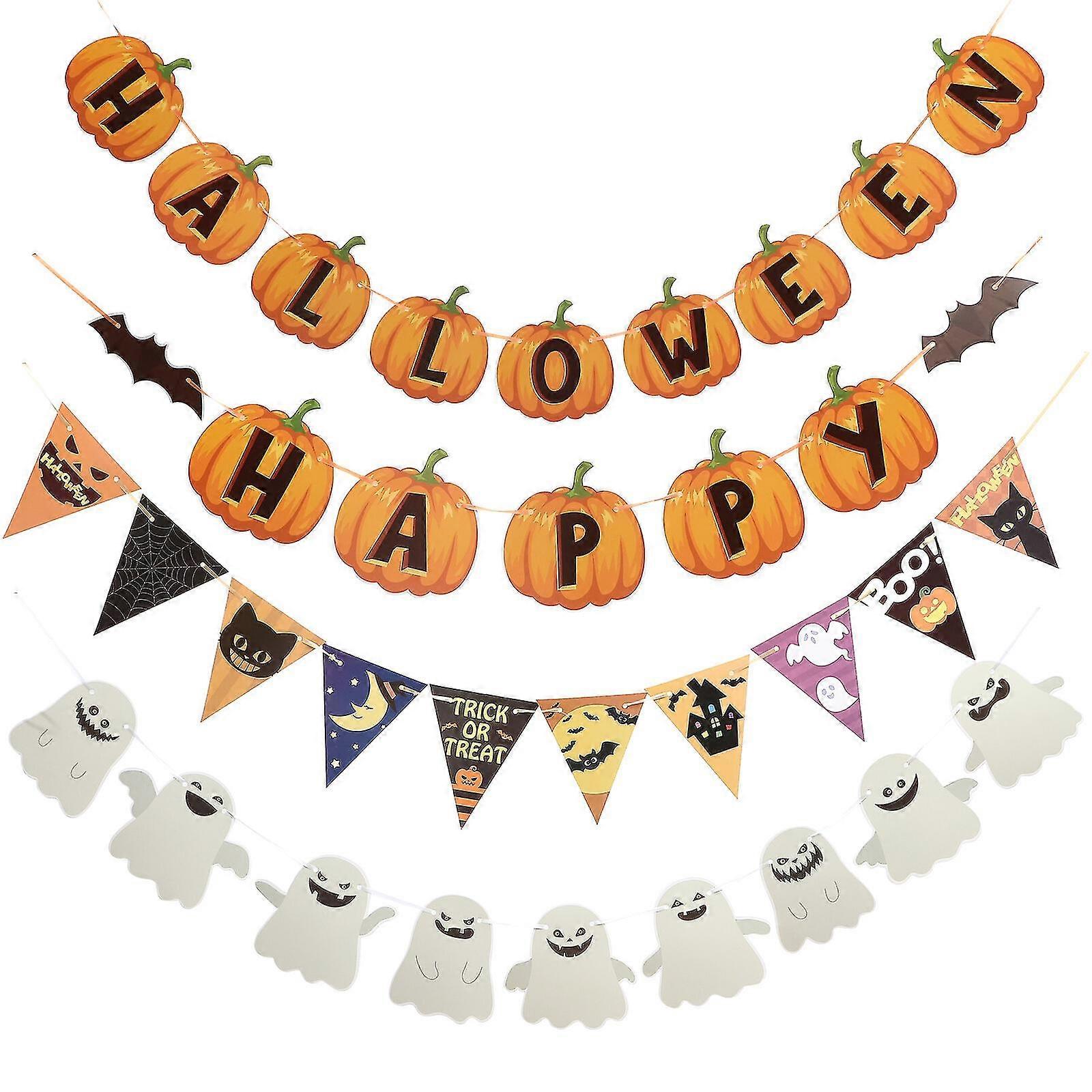 3pcs Halloween Banner Paper Bunting Flag Halloween Party Decoration For Outdoor Indoor