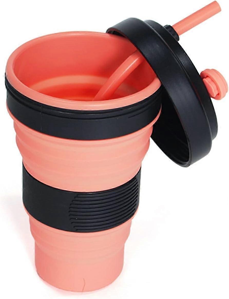 Folding Cup In Silicone Coffee Straw With Stainless Steel Spring Sphere Travel Cups For Outdoor Water Portable Folding Bottle (Capacit : 550Ml)(Orange