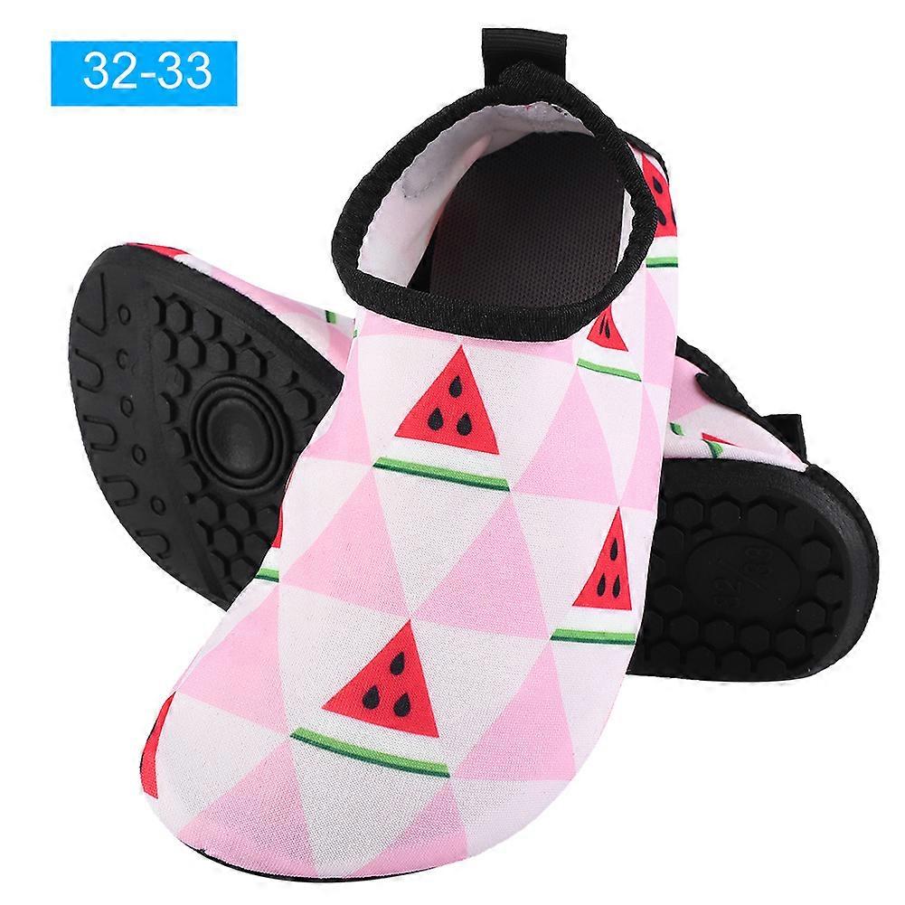 1、Adopt good quality, high-elastic roman cloth material, soft, durable and wear-resistant. 2、Ergonomic design, perfect fit your feet, comfortable for wear. 3、Vamp adopts breathable fabric, always keep your feet dry. 4、Sole adopts TPR thermoplastic rubber, anti-slip and wear-resistant. 5、Lightweight and portable. Ideal for running, cycling, skid, swimming, river tracing, beach activities etc. Features: 1. Adopt good quality, high-elastic roman cloth material, soft, durable and wear-resistant. 2. Ergonomic design, perfect fit your feet, comfortable for wear. 3. Vamp adopts breathable fabric, always keep your feet dry. 4. Sole adopts TPR thermoplastic rubber, anti-slip and wear-resistant. 5. Lightweight and portable. Ideal for running, cycling, skid, swimming, river tracing, beach activities etc. 6. With watermelon pattern and bright color, fashion and attractive. Specifications: Material: Roman Cloth Color: White & Pink with Watermelon pattern Optional Size: 26-27#, 28-29#, 30-31#, 32-33# Feet Length (cm/in) Suggested Size 14.9-15.4/5.87-60.06 26-27# 16.2-16.7/6.38-6.57 28-29# 16.8-17.7/6.61-6.97 30-31# 18.5-19.5/7.28-7.68 32-33# Packing List: 1 Pair Kids Water Shoes