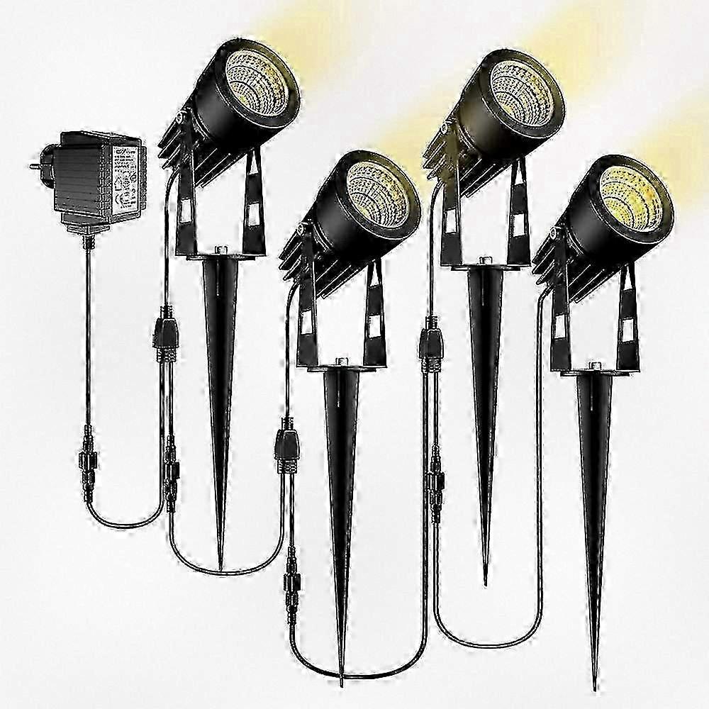 Outdoor Lighting, Set of 4 Waterproof LED Spotlights with Ground Spikes and Plug for Garden