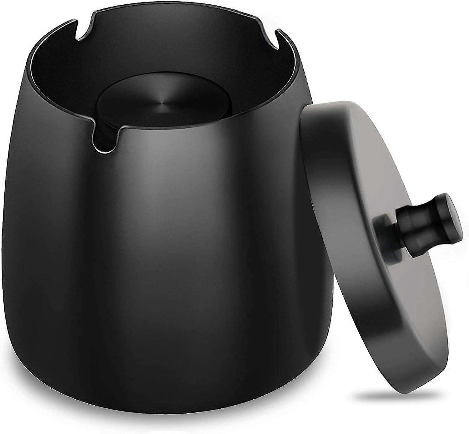 Large ashtray for outdoors, heavy windproof ashtray with lid, stainless steel table ashtray, with non-slip base,Black1pc-10.5 x 10.2 cm (H x diameter)