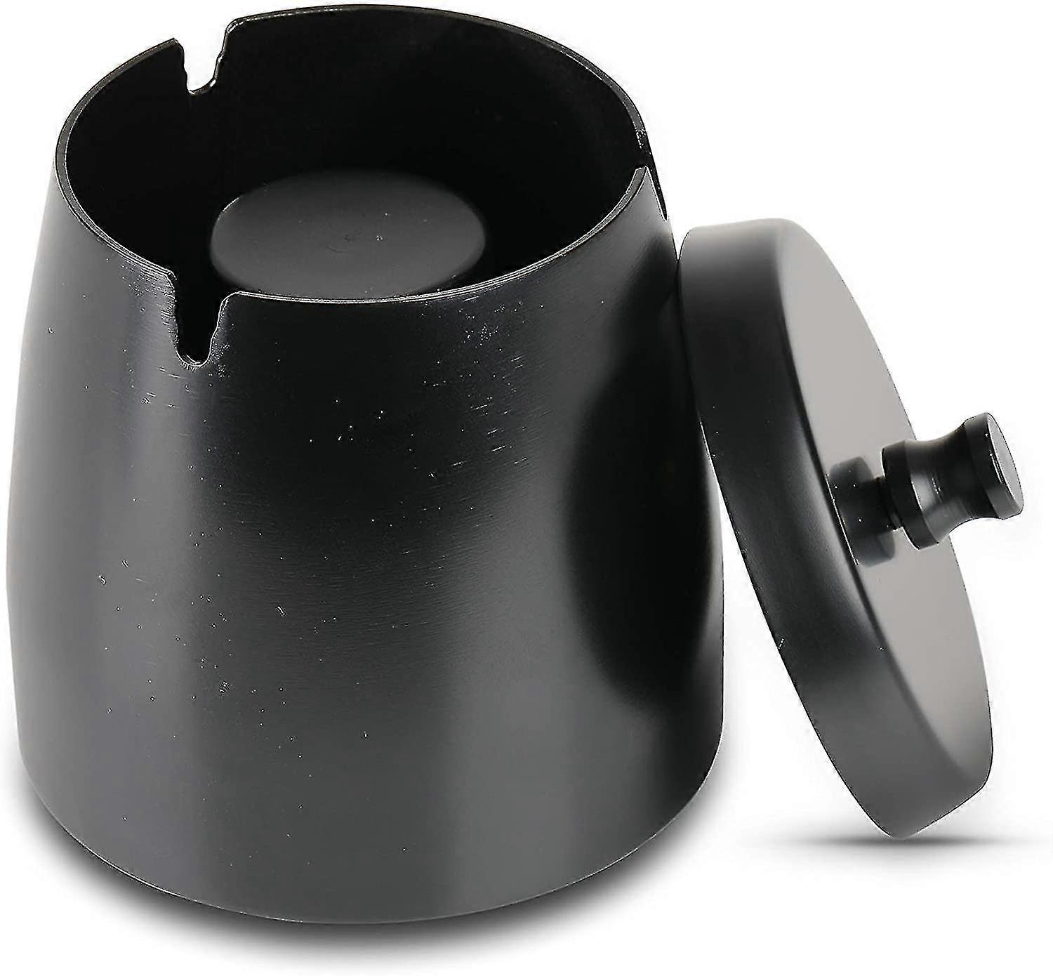 Outdoor Stainless Steel Ashtray With Smell Proof Lid and Non-slip Mat For Indoor Outdoor Use, Black