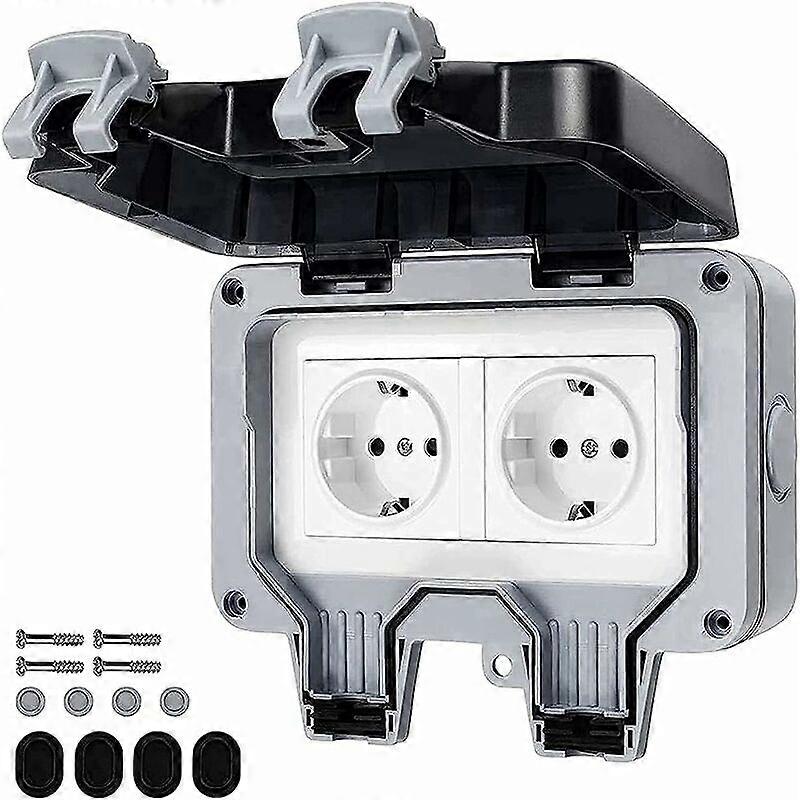 Outdoor Socket, Dustproof, Outdoor Wall Socket, Weatherproof, High Performance, Wet Room, Garden & Outdoor (Double Hole)