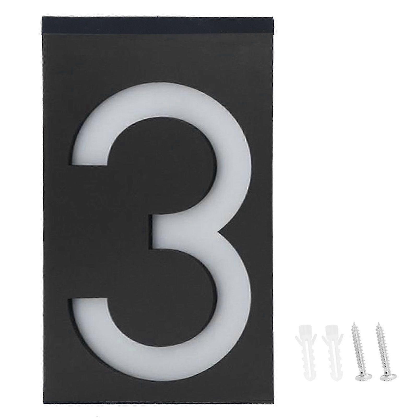 Outdoor Solar Power LED Number Sign Light House Hotel Store Door Address Lights Plate(Numro 3 )