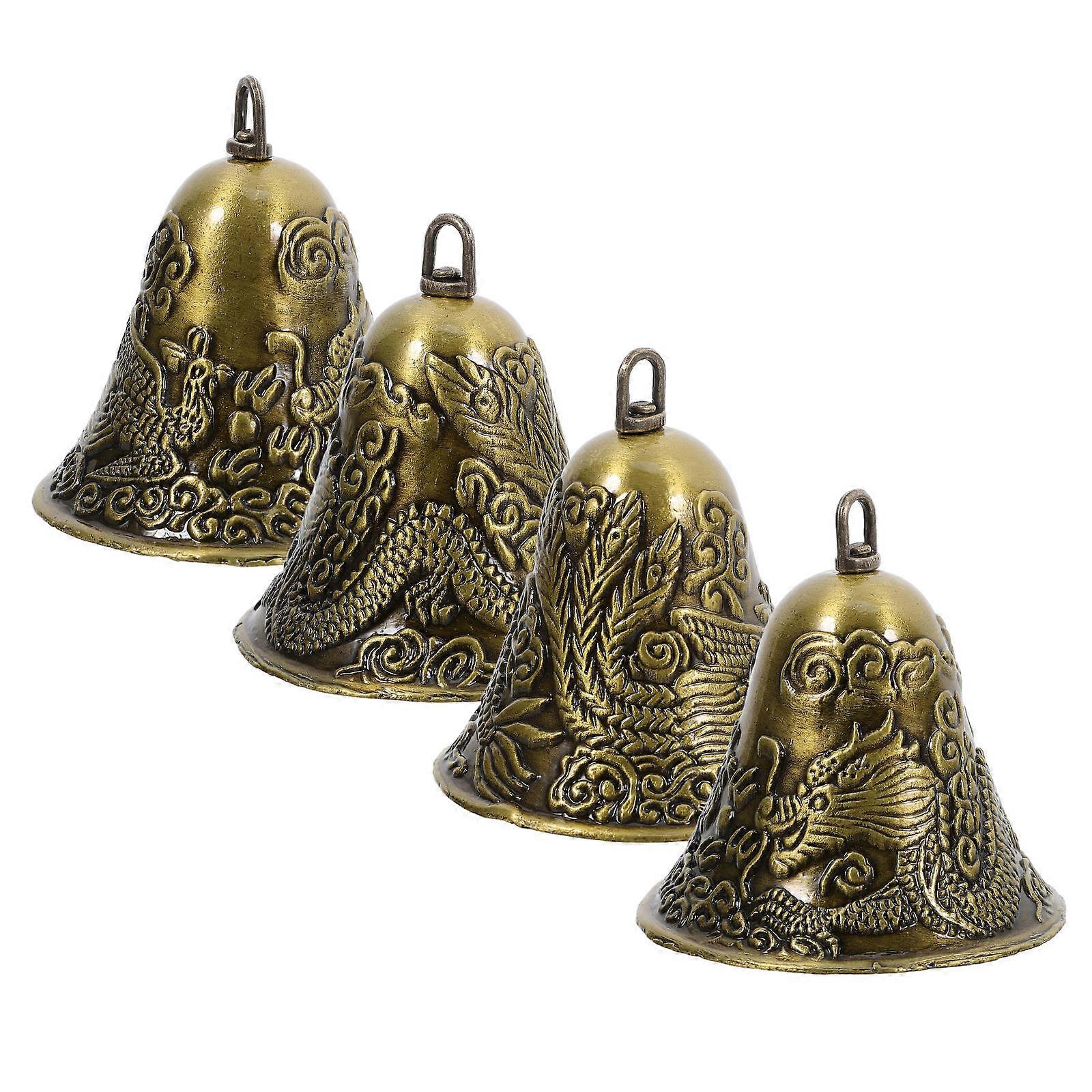 Chimes For Outdoors Jingle Bells Wind Chimes Golden Dragon And Phoenix Motif Artistic Design Zinc Alloy Wind Chime Enhancement 4Pcs