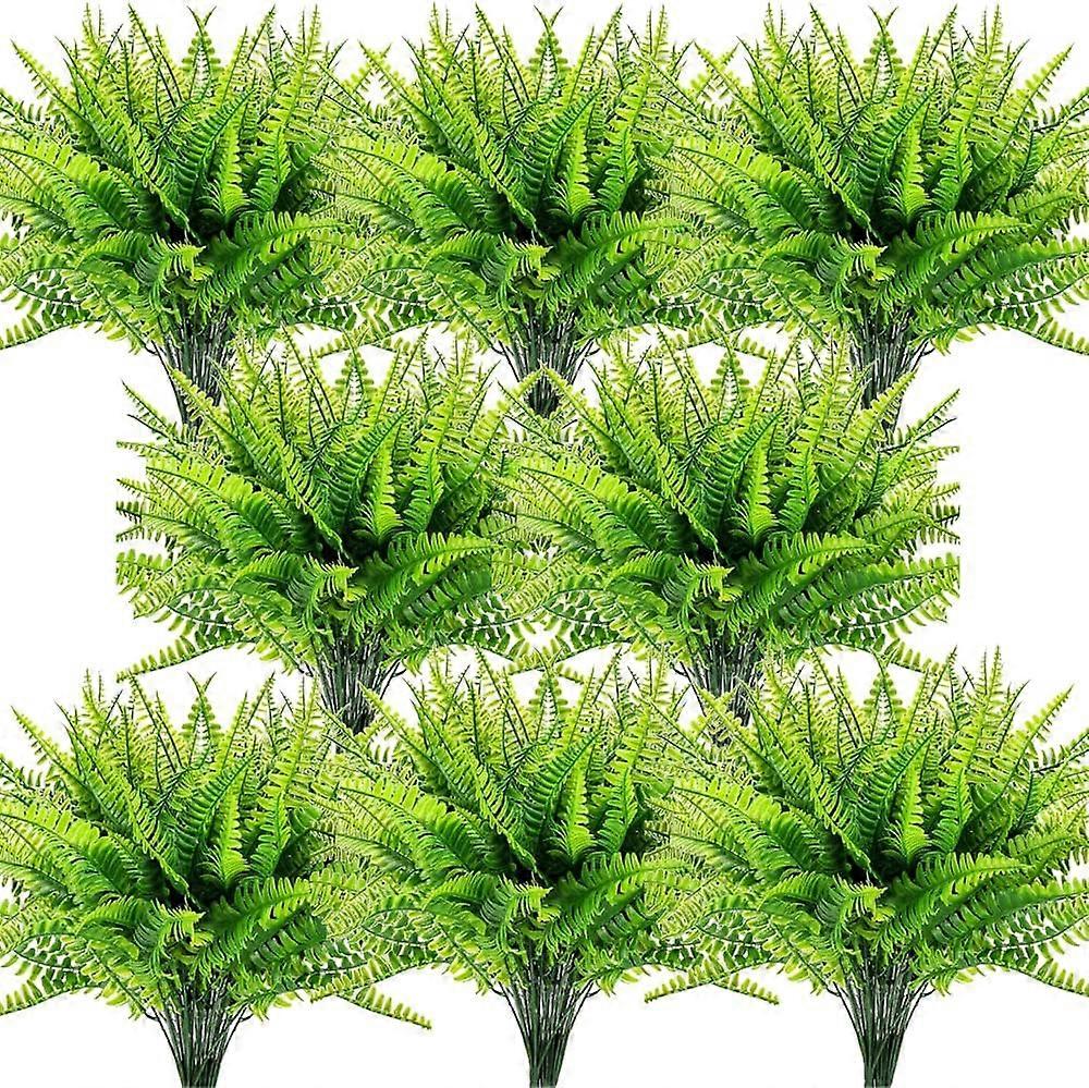 Artificial Ferns for Outdoors Fake Fern Plant Faux Boston Fern for Patio Porch Outdoor Plants Decor (8 Pcs)
