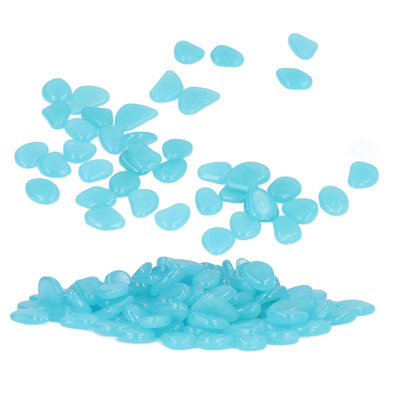 Outdoor Luminous Stones Colorful Fluorescent Luminous Pebbles for Dark Garden Courtyard Walkway Garden Trails 200 / Bag Light Blue