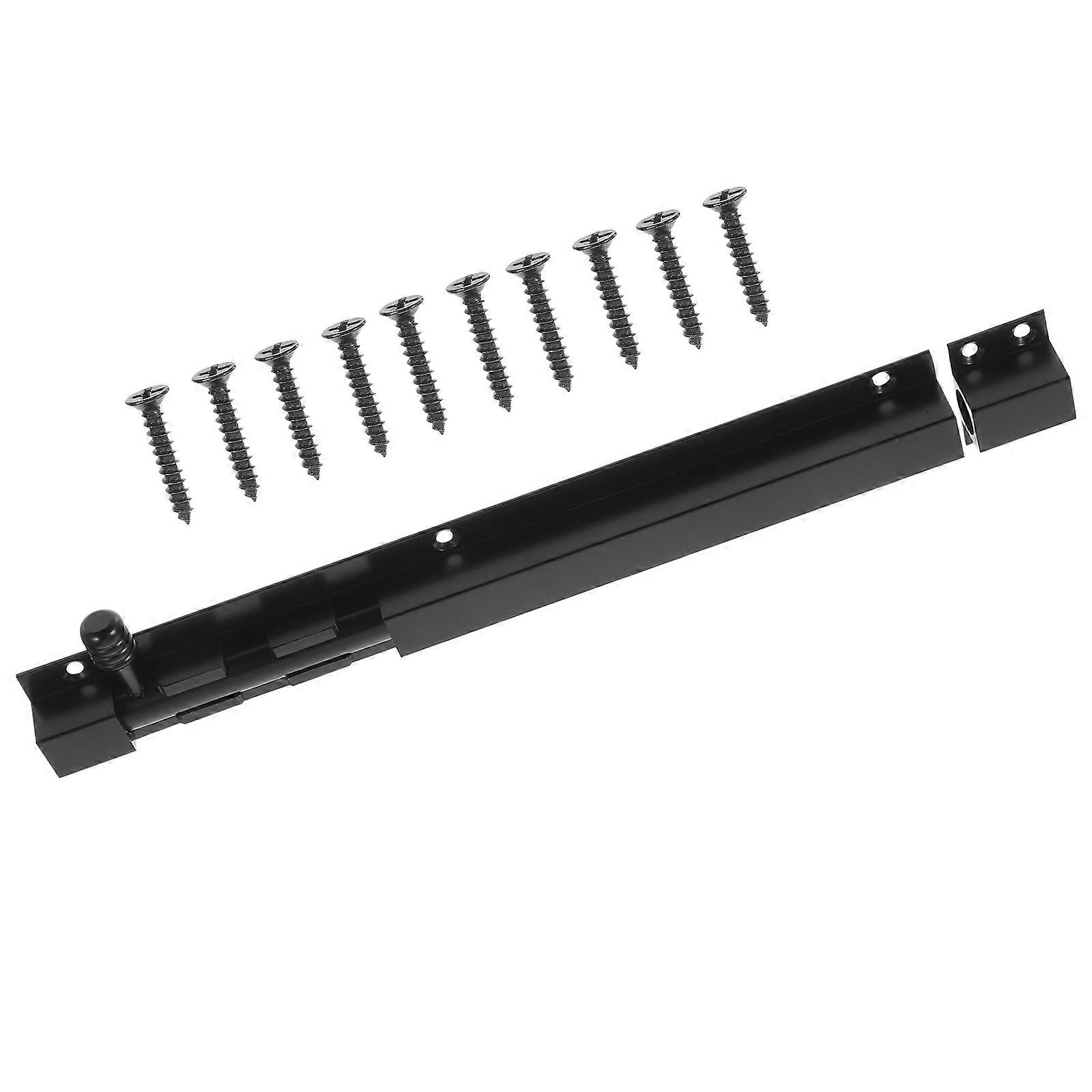 Constructed from Aluminum alloy material, ensuring quality and longevity, will not rust and . EASY installation, compression spring, make the latch strong bounce and then open. Suitable for all kinds of sliding doors, bathroom doors, gate doors and windows, etc. Features - Color: Black. - Material: Aluminum alloy. - Thick material, long - term use is not easy to deformation. - It is not easy to rust and can be installed in damp places of toilet/kitchen lamp. - Simple product structure and wide applicability. - Safe to use and durable, easy to install. - bolt core, greatly enhancing safety performance. Package list: 1 Latch Bolt 1 x bag 6 x Screws