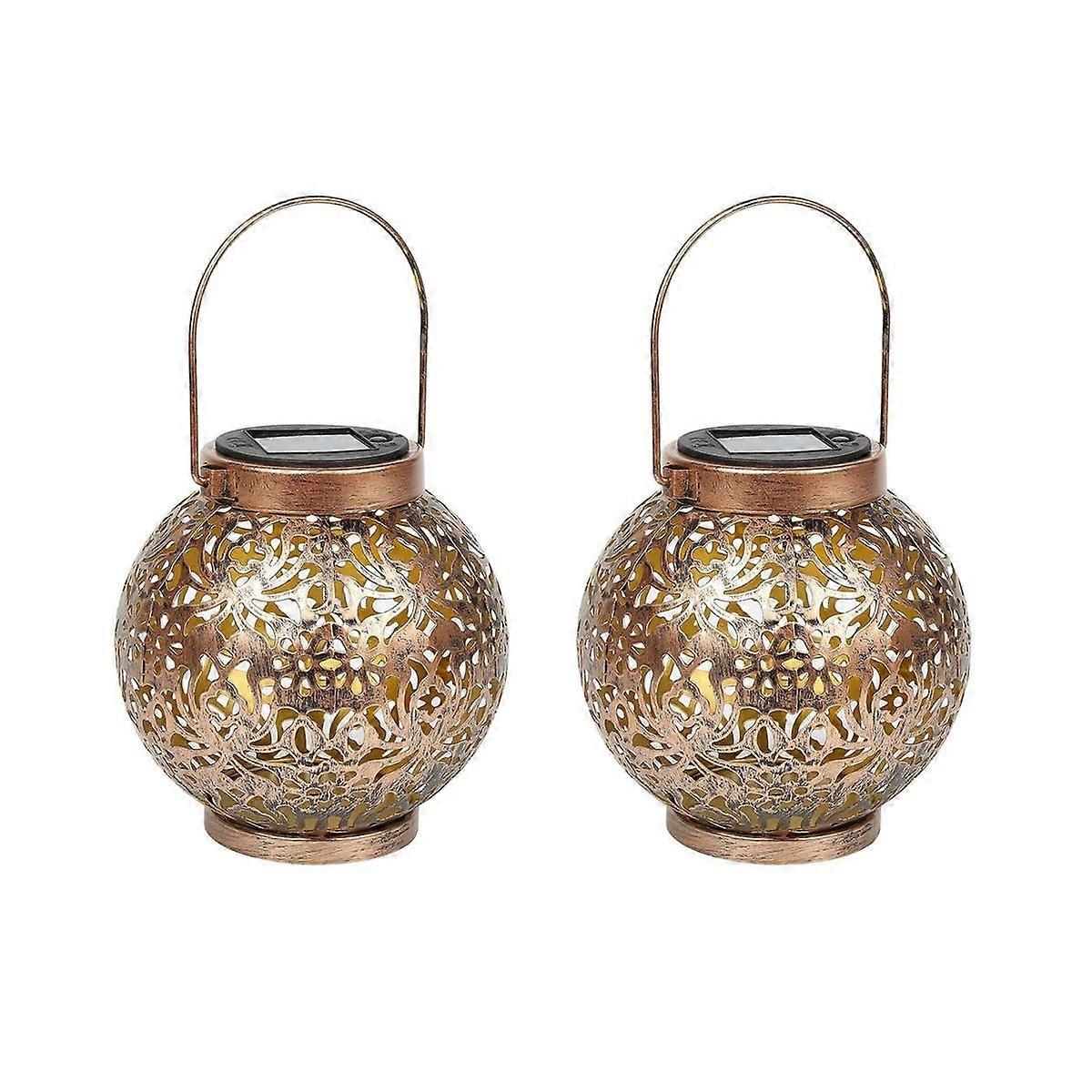 2 Pack Solar Lantern for Outdoors, Metal Solar Lights Solar Lantern Warm White IP55 Waterproof Hanging Garden Decoration