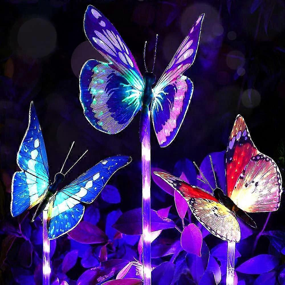 Outdoor Decorative Solar Garden Lights,3 Pack Solar Powered Garden Lights with Butterfly Changes Multicolor