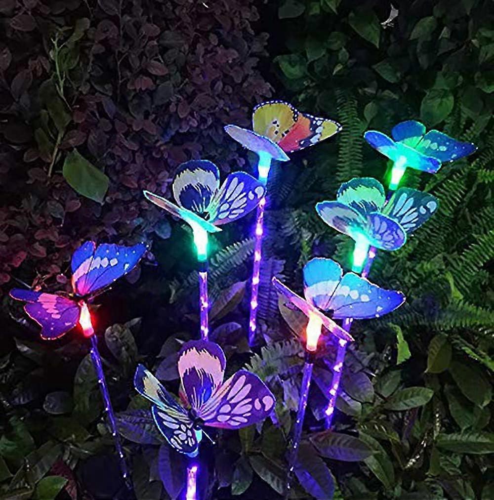 Outdoor Decorative Solar Garden Lights, 3 Pack Solar Powered Garden Lights with Butterfly Multicolor Changes of LED Lights Garden, Patio, Yard