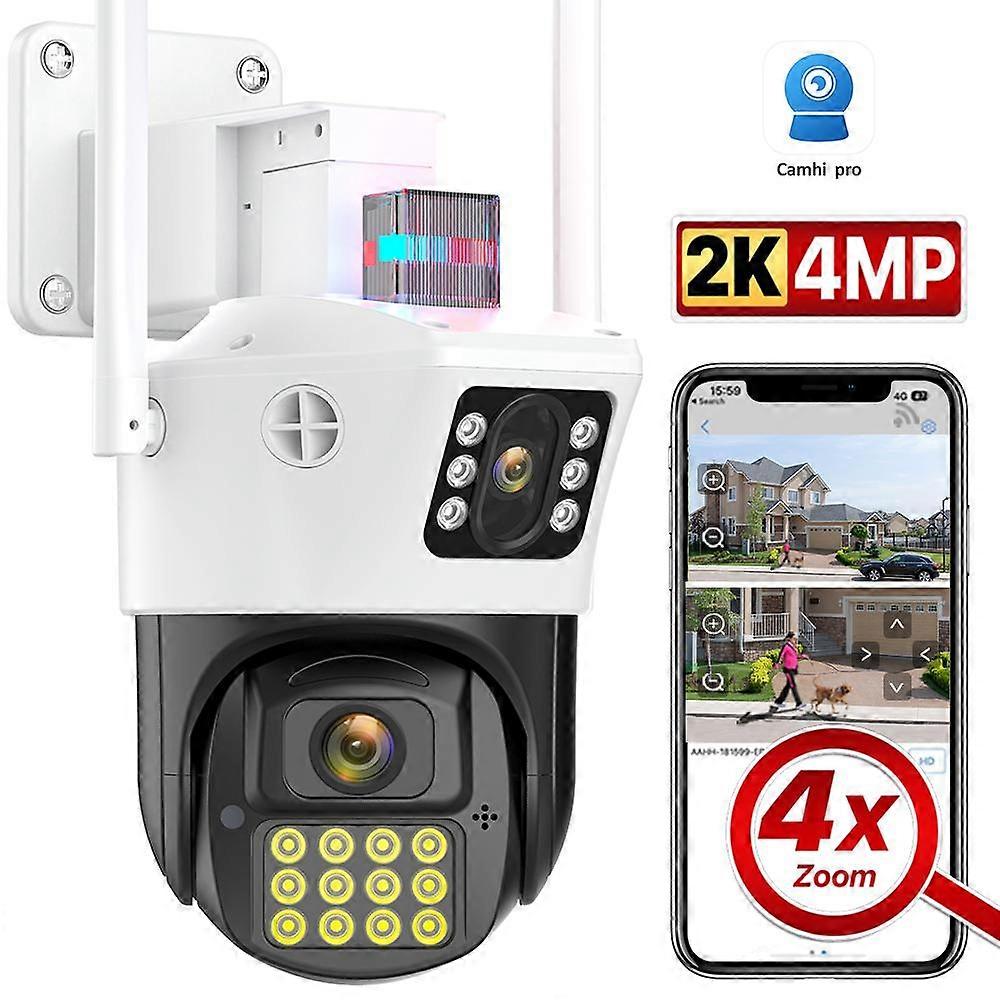Outdoor Wifi Camera 4MP HD Dual Lens Dual-Screens PTZ Camera AI Auto Tracking 1080P CCTV Surveillance Police Light Alarm Camhi
