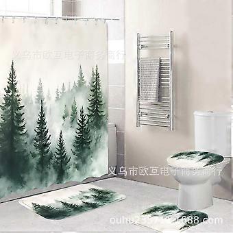 Mountain and tree shower curtain gift beach modern home bathroom decoration curtain toilet floor mat 3 piece set