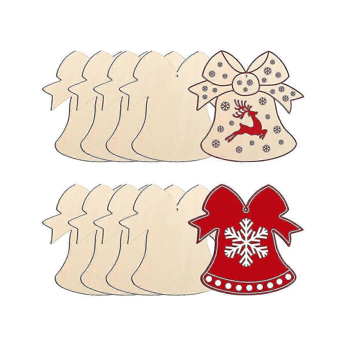 30pcs Wooden Christmas Ornaments To Paint Diy Blank Unfinished Bell Shape Wood Ornament For Crafts