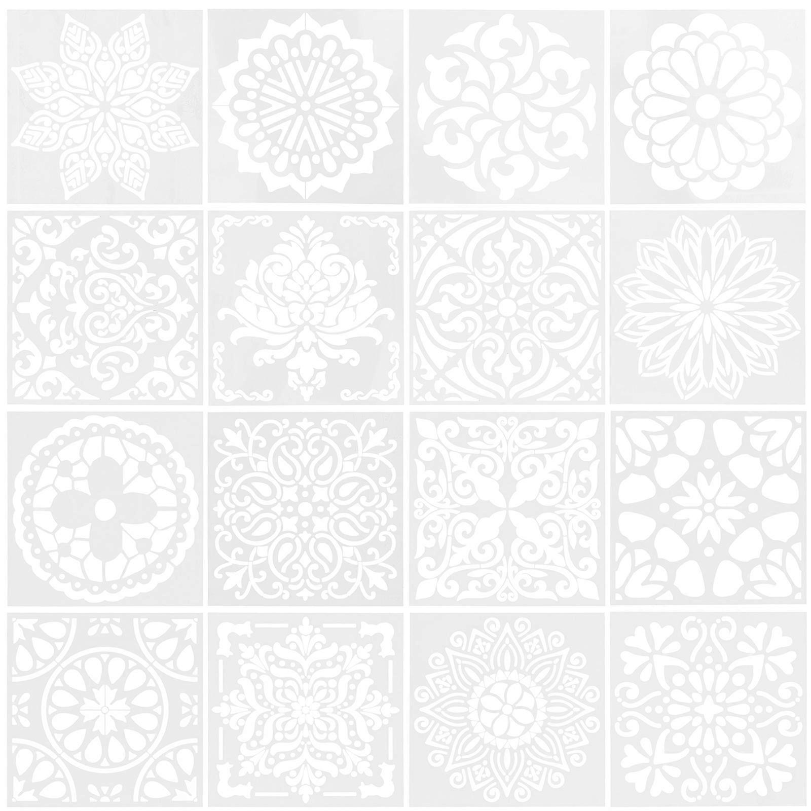 16pcs Reusable Mandala Stencils for Crafts Durable PET Templates for Painting, Decor & School Projects Smooth Surface for Easy Use & Cleaning