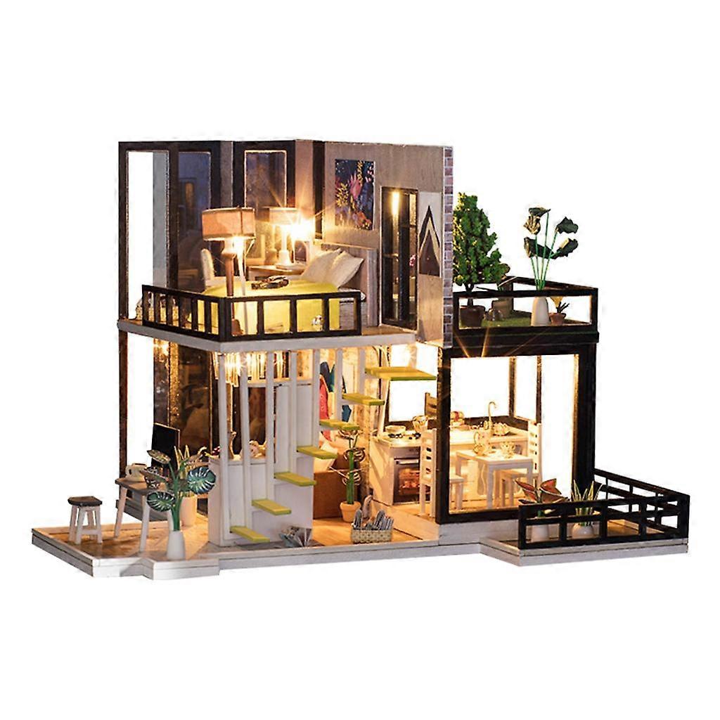 Description: 1/20 DIY miniature dollhouse kit wooden furniture 3D puzzle modern house kits. The house comes with LED lights and various daily supplies, very lifelike, very beautiful. A wonderful project for kids and adults, improving creativity, develop interest and cultivating parent-child affection, a great way to relax and be patience. It is not finished model, you have to make it all by yourself, build yourself a model Best Gift for Girls and DIY Fan. Specification: Material: Wooden Color: Multicolor Size: approx. 33x8x22.5cm/12.99x3.15x8.86inch. Package Includes: 1 Set 1/20 DIY Dollhouse Toy Note: This Dollhouse Needs 2* AAA Batteries to Light Up LEDS(Without Shippment)
