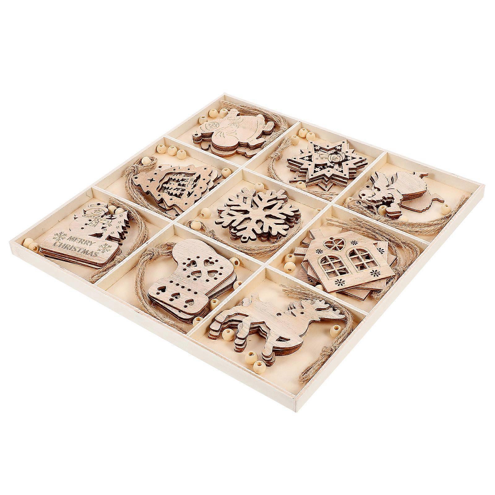 Paintable Square Wood Pendant For Craft Lovers Creative Christmas Ornaments 8x7.6cm 1 Set