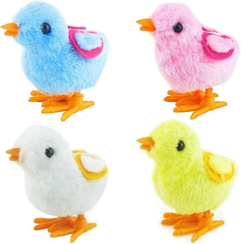 Clockwork Jumping PlaysetCute and fluffy looking, this Clockwork Jumping chick set is full of visual stimulation, great entertainment for toddlers to watch and play with, and also great for older kids and spring baskets. Cute Jumping Chicks and RabbitsWhen you entangle these little animals, they will jump around. Your kids can easily get the upper hand, and the speed at which they move makes a chase or race easy. Eco-Friendly High Quality MaterialMade from 100% eco-friendly BPA-free plastic and plush, these Clockwork Jumping Chicks are fluffy and comfortable to touch, and kids of all ages will love them. The chicks are randomly colored. Toddler Palm Size: The Miniature Clockwork Chicks Playset contains 4 clockwork jumping chicks of the same size. Chickens in random colors. Measuring 3.7 x 3.3 inches, your kids can easily roll it up and watch it jump. Perfect GiftThis Clockwork Jumping Animal Playset is perfect for many occasions such as Easter Eggs, Easter Basket Fillers, Party Gifts, Gift Bag Fillers, Student Prizes, Christmas or Birthday Gifts, Class Prizes, Carnivals Prizes, family prize boxes, etc. Product Description Small, fluffy and colorful, these "walking" toys are so cute they look like living cartoon characters. This is an instant hit for toddlers These Clockwork Jumping Chicks are made of high quality BPA free plastic and fluffy plush for a soft finish and a very comfortable touch. Cute looking and sized to fit one hand, it's sure to make people of all ages smile from ear to ear. Turn the springs of these jumping creatures clockwise and drop them and they will jump around your house. Perfect for egg hunts, bunny and chick races and seeing every young and old cheer for their chick or bunny. This will help build good family relationships. It's a great addition to an Easter basket, or as a little "surprise" any time of year. Even your cat and dog will love the clockwork toy Specifications: Material: High Quality PVC Quantity: 4 Pieces of Clockwork Jumping Toys Note: Small parts may pose a choking hazard, please do not give to children under 2 years old.