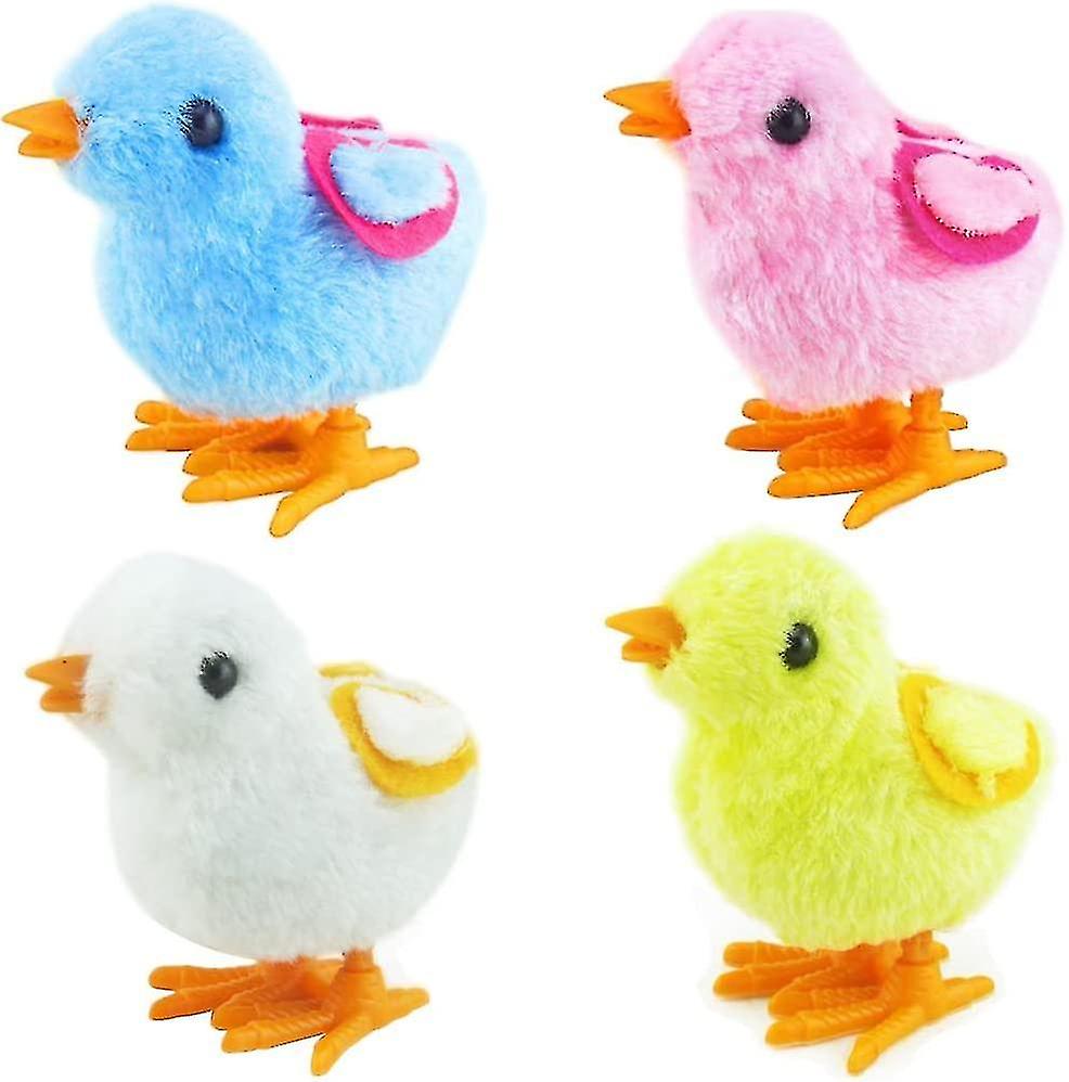 Clockwork Jumping PlaysetCute and fluffy looking, this Clockwork Jumping chick set is full of visual stimulation, great entertainment for toddlers to watch and play with, and also great for older kids and spring baskets. Cute Jumping Chicks and RabbitsWhen you entangle these little animals, they will jump around. Your kids can easily get the upper hand, and the speed at which they move makes a chase or race easy. Eco-Friendly High Quality MaterialMade from 100% eco-friendly BPA-free plastic and plush, these Clockwork Jumping Chicks are fluffy and comfortable to touch, and kids of all ages will love them. The chicks are randomly colored. Toddler Palm Size: The Miniature Clockwork Chicks Playset contains 4 clockwork jumping chicks of the same size. Chickens in random colors. Measuring 3.7 x 3.3 inches, your kids can easily roll it up and watch it jump. Perfect GiftThis Clockwork Jumping Animal Playset is perfect for many occasions such as Easter Eggs, Easter Basket Fillers, Party Gifts, Gift Bag Fillers, Student Prizes, Christmas or Birthday Gifts, Class Prizes, Carnivals Prizes, family prize boxes, etc. Product Description Small, fluffy and colorful, these "walking" toys are so cute they look like living cartoon characters. This is an instant hit for toddlers These Clockwork Jumping Chicks are made of high quality BPA free plastic and fluffy plush for a soft finish and a very comfortable touch. Cute looking and sized to fit one hand, it's sure to make people of all ages smile from ear to ear. Turn the springs of these jumping creatures clockwise and drop them and they will jump around your house. Perfect for egg hunts, bunny and chick races and seeing every young and old cheer for their chick or bunny. This will help build good family relationships. It's a great addition to an Easter basket, or as a little "surprise" any time of year. Even your cat and dog will love the clockwork toy Specifications: Material: High Quality PVC Quantity: 4 Pieces of Clockwork Jumping Toys Note: Small parts may pose a choking hazard, please do not give to children under 2 years old.