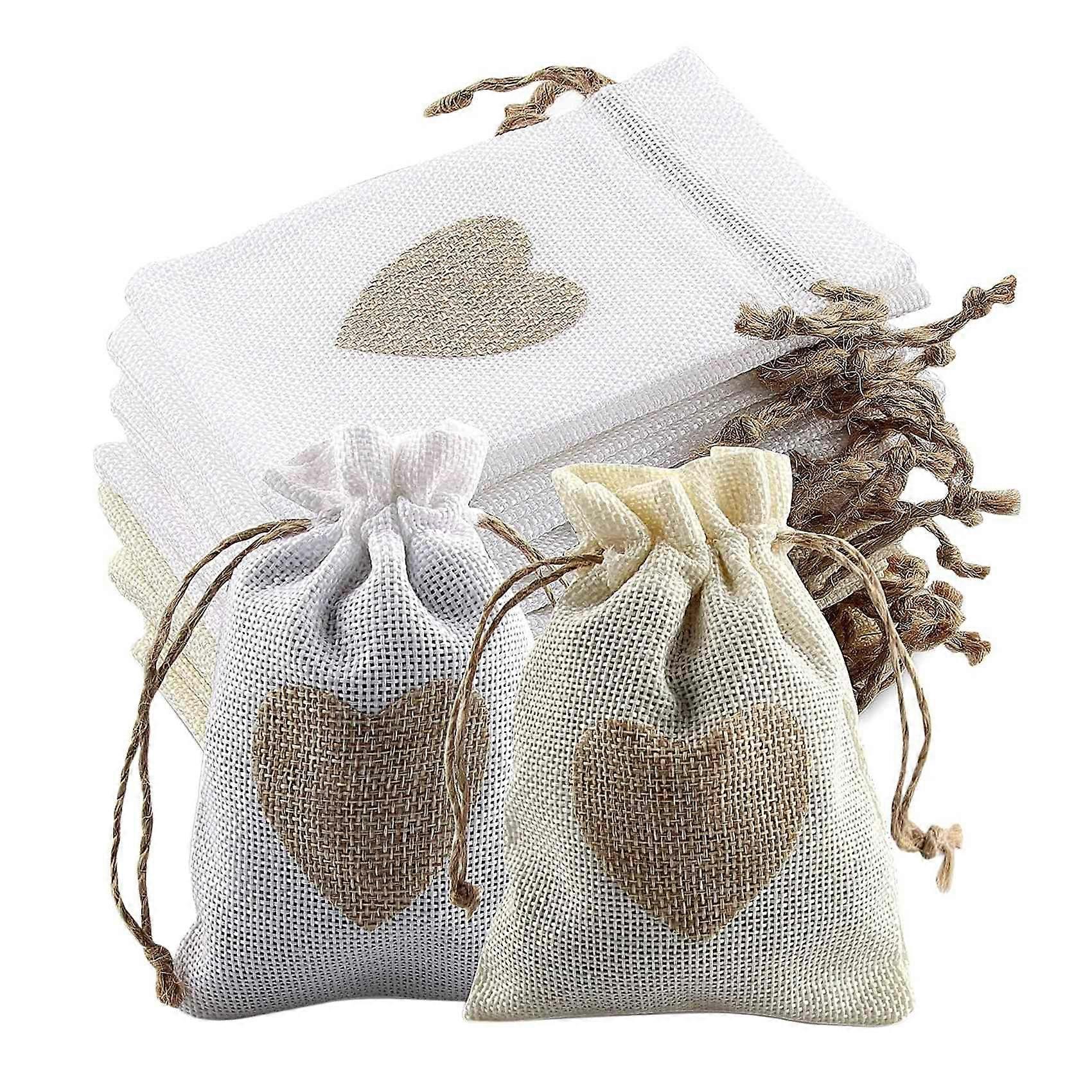 24Pcs Burlap Pouches with Drawstring and Heart Pattern Candy Gift Bag Jute Pouch Baptism Bag Wedding for Stuffing Bag